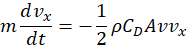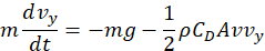 m \frac{d\vec v}{dt} = m\vec g – \frac{1}{2}\rho C_D A v\vec v