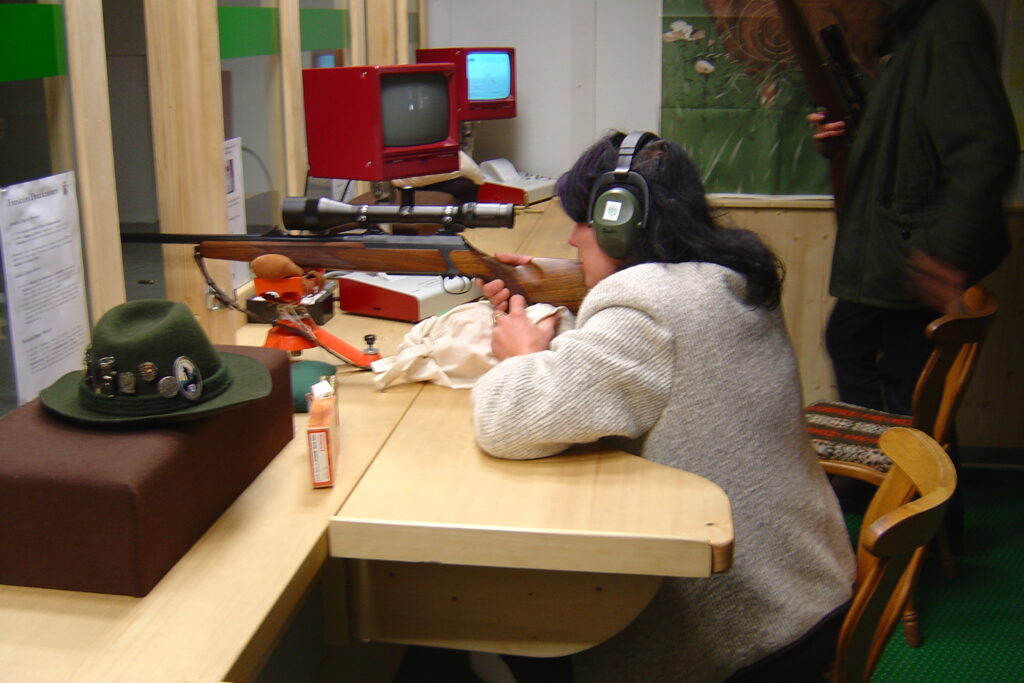 Zu Beginn werden ein bis zwei Probeschüsse abgegeben, um die ungefähre Treffpunktlage festzustellen.