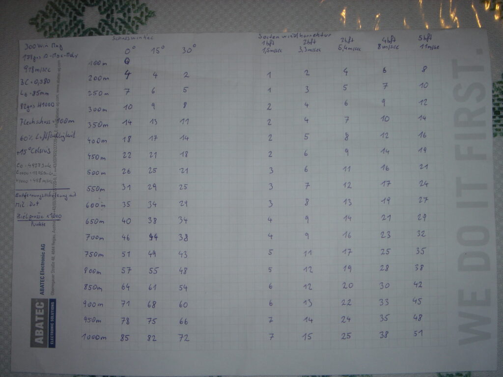 Spalte „Abweichung zur Visierlinie“ ist für Dich jagdlich die wichtigste Spalte.