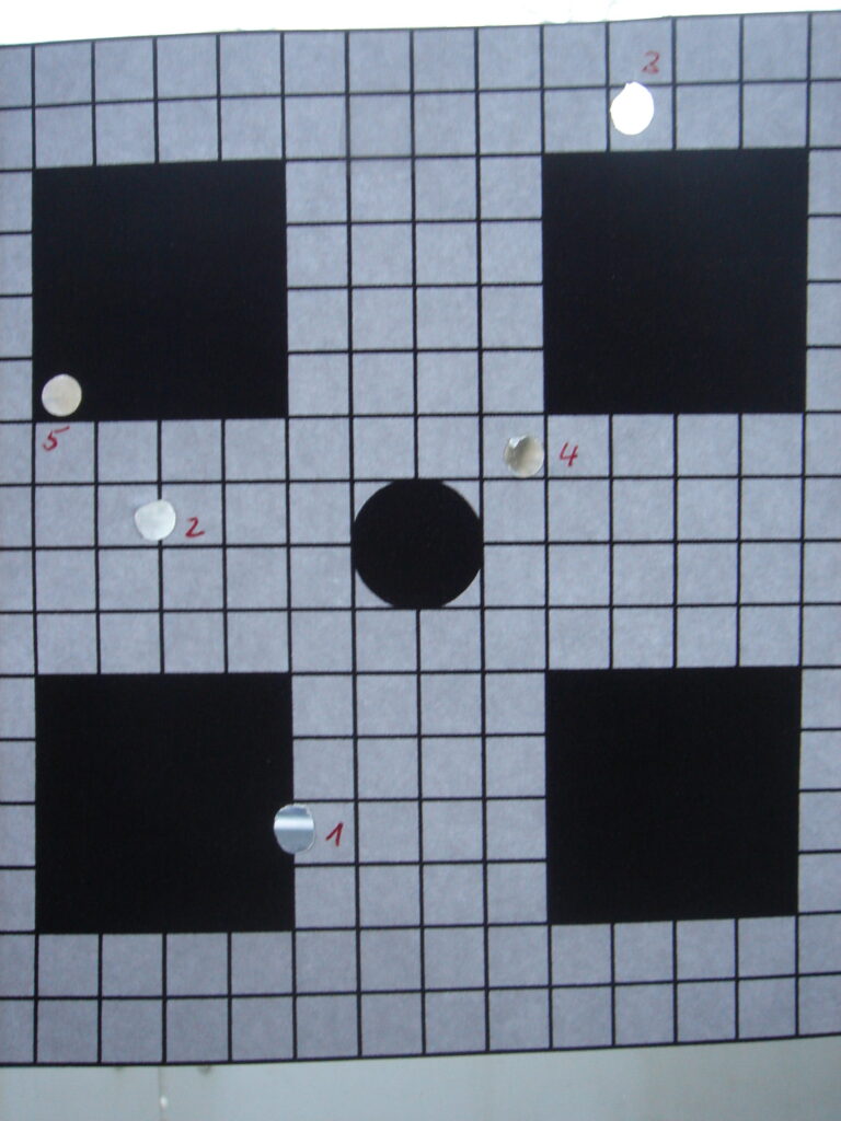 Nach jeder Korrektur wird erneut eine Schussgruppe geschossen, um die Wirkung der Einstellung zu überprüfen.